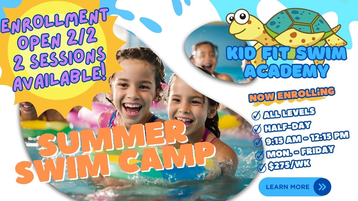 KFSA swim summer camp offers a half day swim camp 9:15 am to 12:15 pm Monday through Friday for students 3-10 years of age of ALL Levels. (swimmers must be 3 years of age prior to their start date and potty trained).